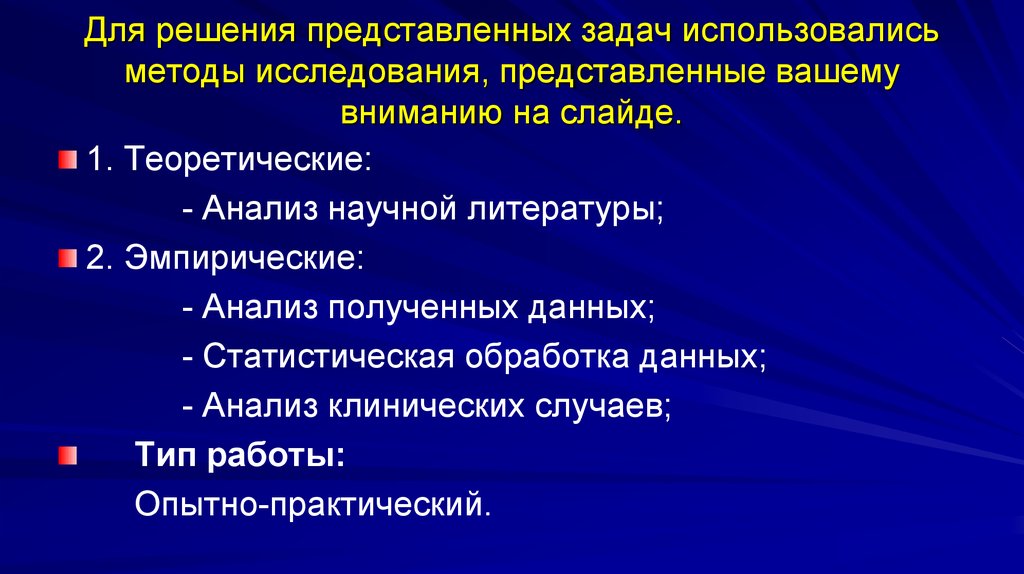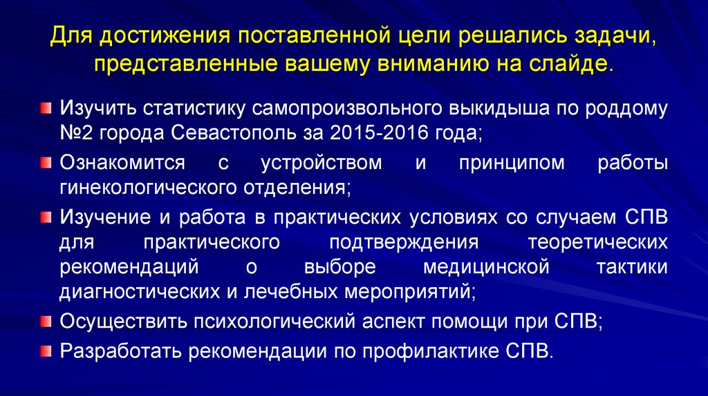 Для достижения поставленной цели решались задачи,представленные вашему вниманию на слайде.