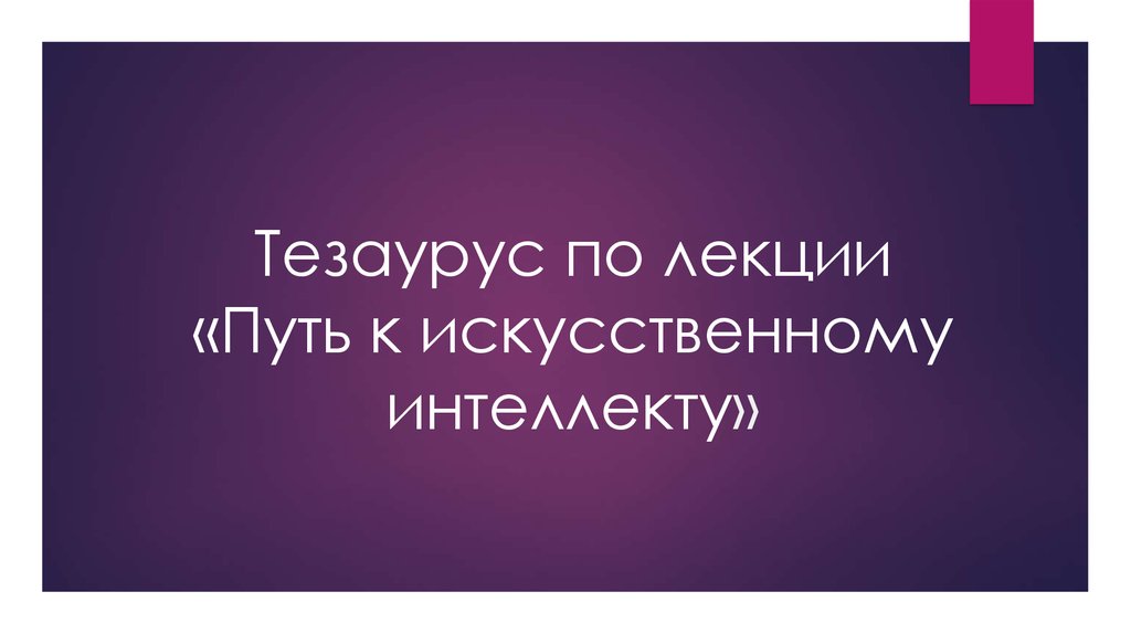 1. Тезаурус по лекции «Путь к искусственному интеллекту»