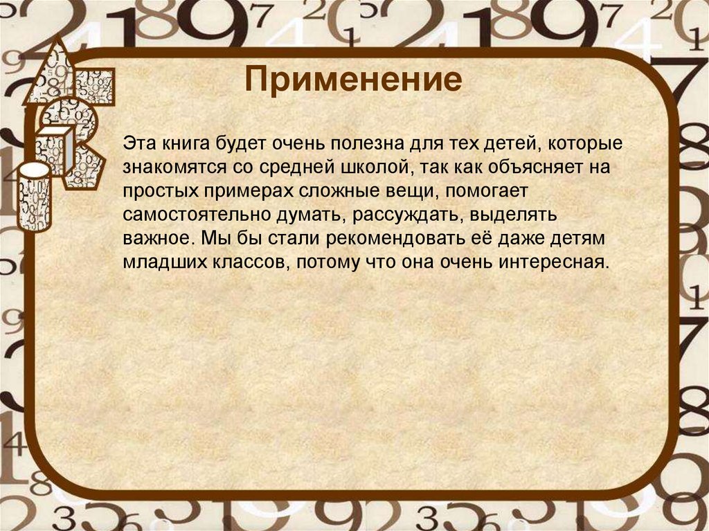 ПрименениеЭта книга будет очень полезна для тех детей, которые
