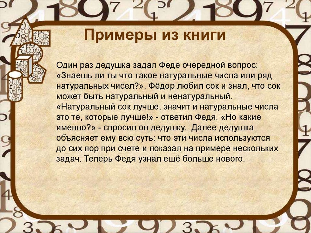 натуральных чисел?». Фёдор любил сок и знал, что сок
