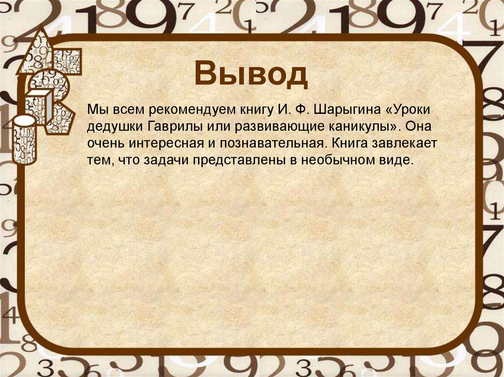 ВыводМы всем рекомендуем книгу И. Ф. Шарыгина «Уроки