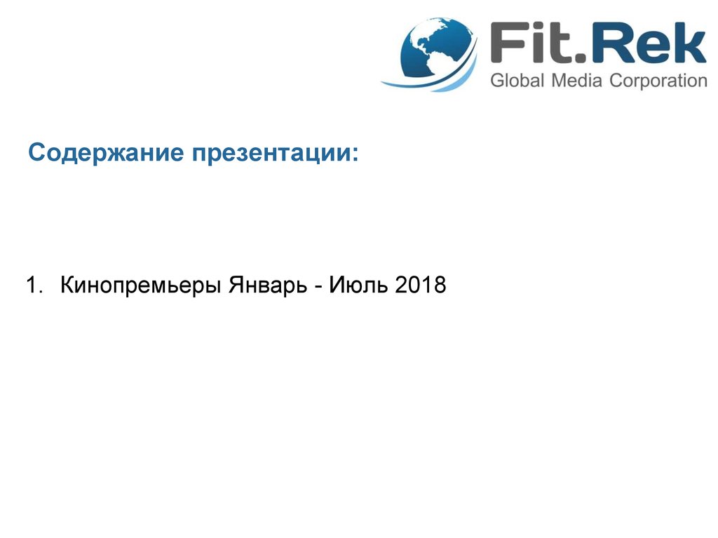 Содержание презентации:1. Кинопремьеры Январь - Июль 2018