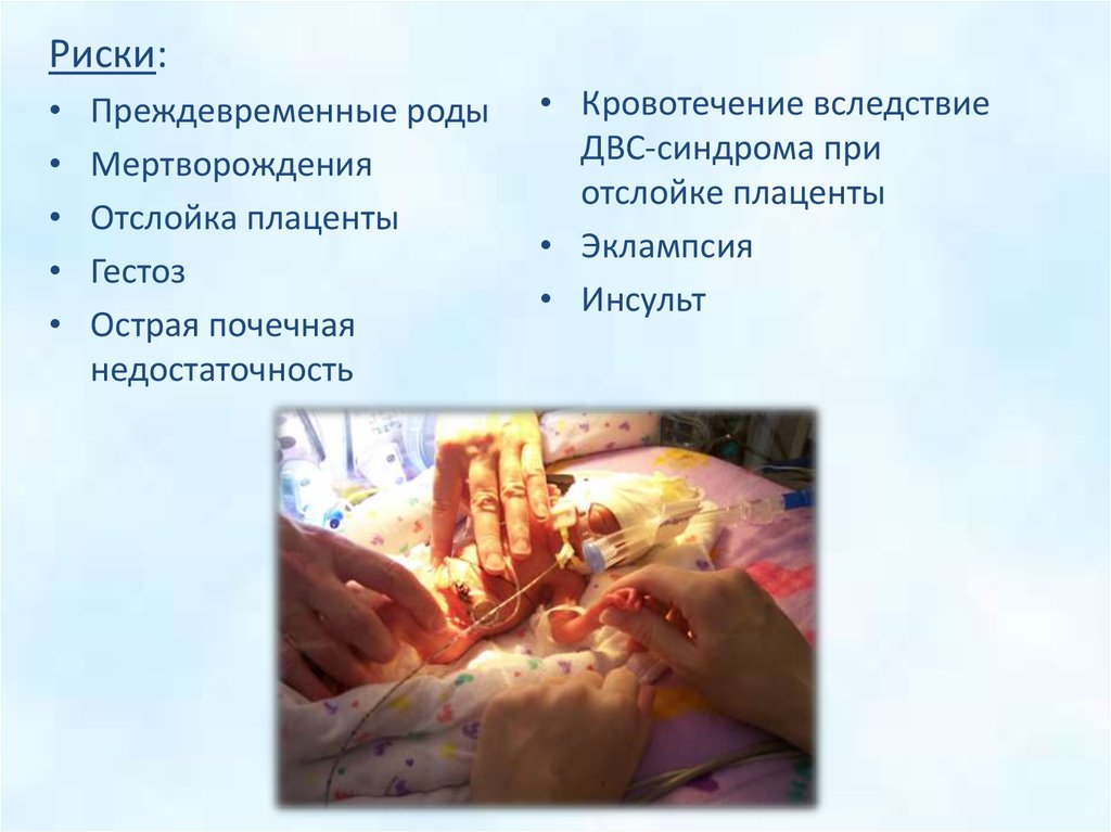 Риски:Преждевременные роды
