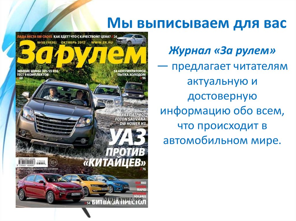 Мы выписываем для васЖурнал «За рулем»