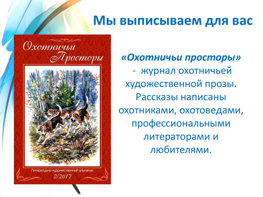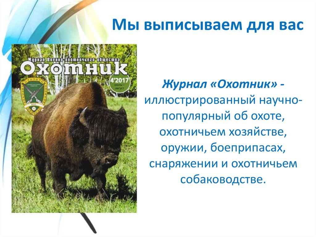Мы выписываем для васЖурнал «Охотник» иллюстрированный научнопопулярный об охоте,