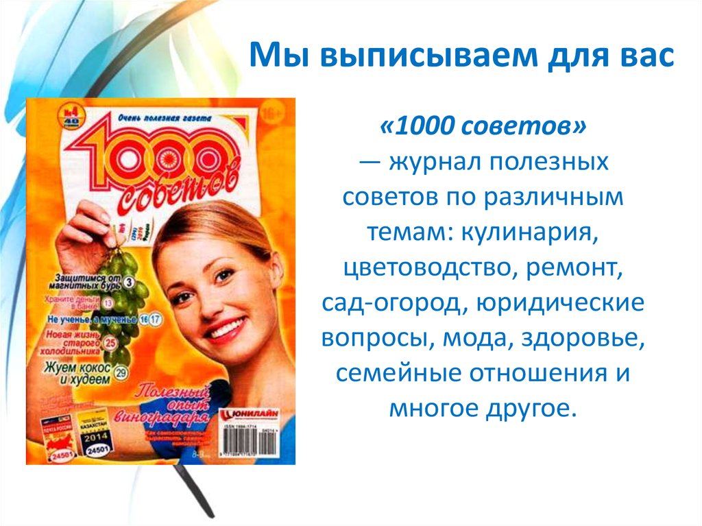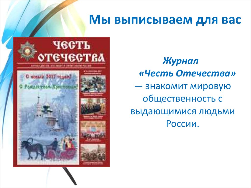Мы выписываем для васЖурнал «Славянка»