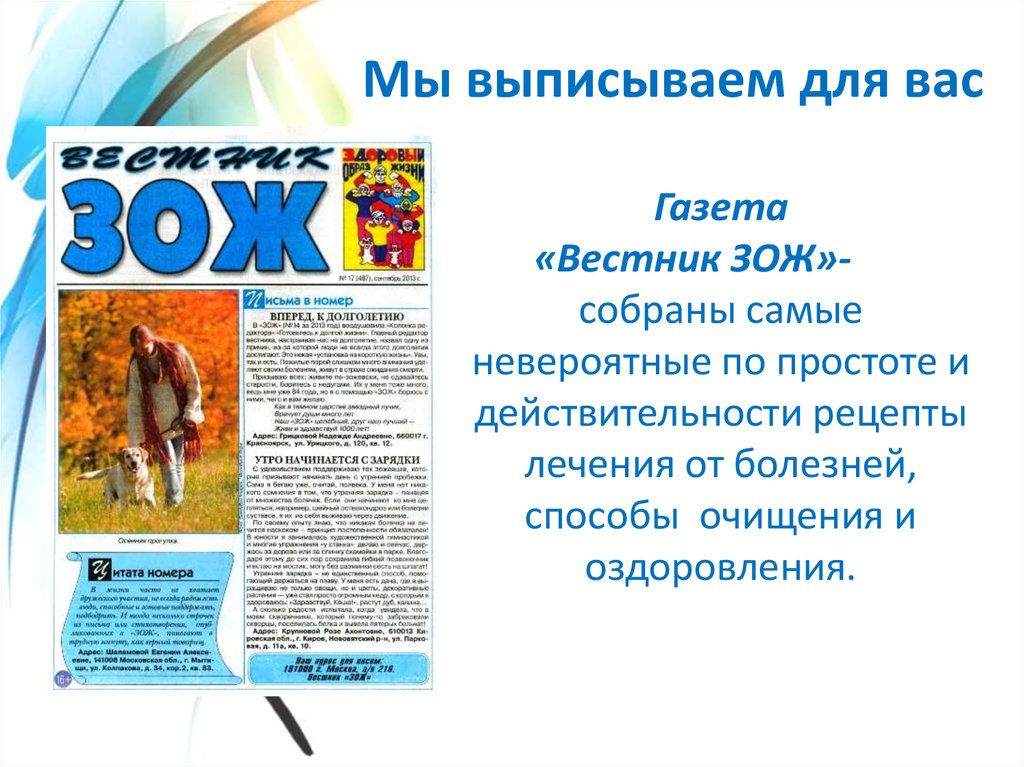 «Вестник ЗОЖ»собраны самые