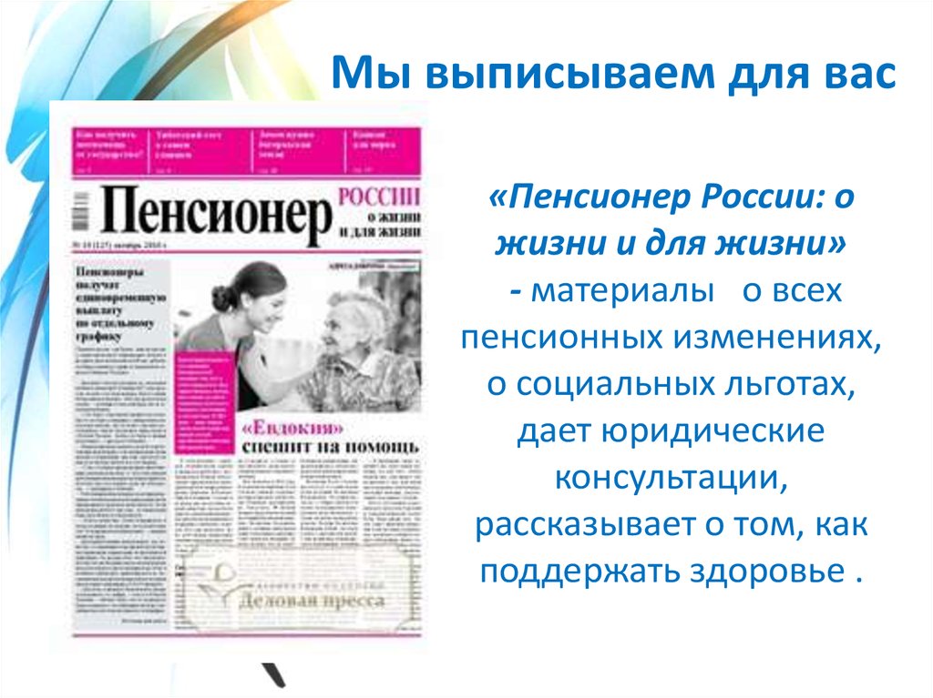 Мы выписываем для вас«Пенсионер России: о
