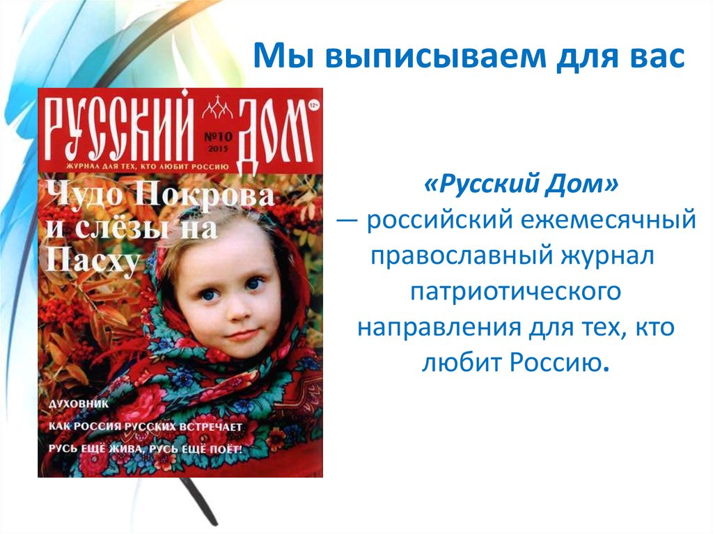 Мы выписываем для вас«Русский Дом»