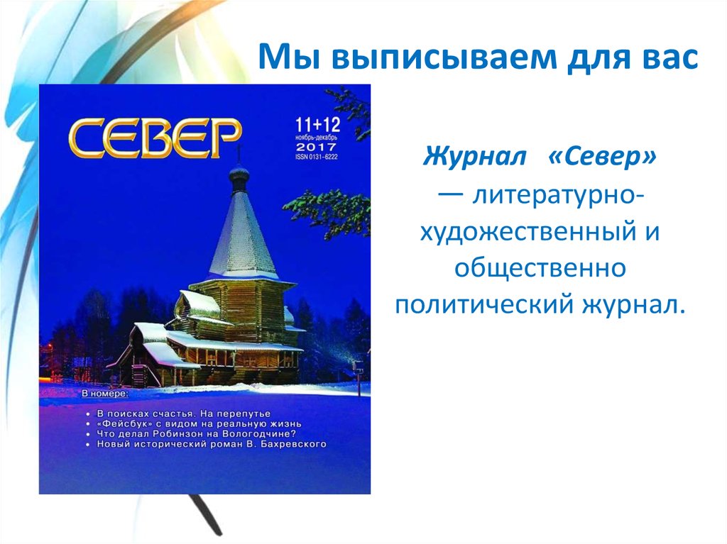 Мы выписываем для васЖурнал «Север»