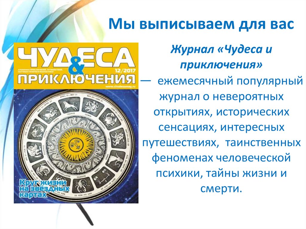 Мы выписываем для васЖурнал «Чудеса и