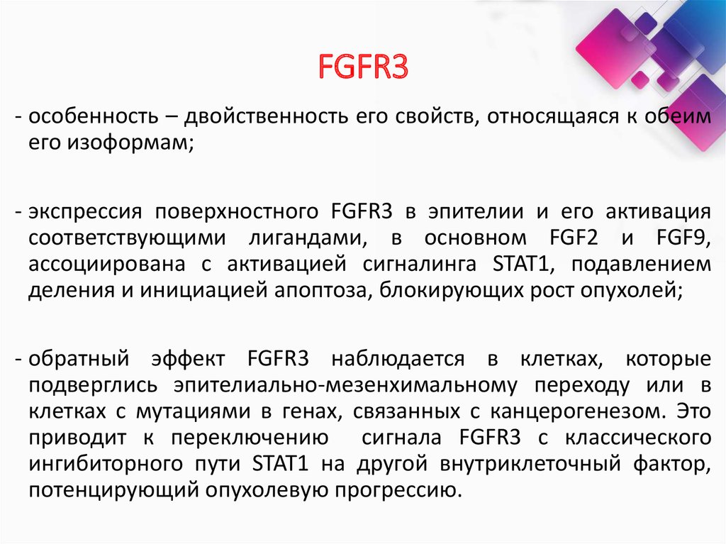 FGFR3- особенность – двойственность его свойств, относящаяся к обеим