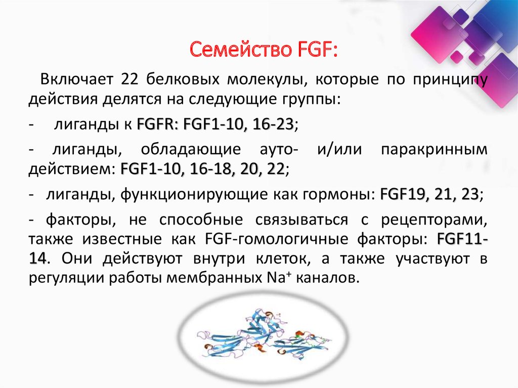 Семейство FGF:Включает 22 белковых молекулы, которые по принципу
