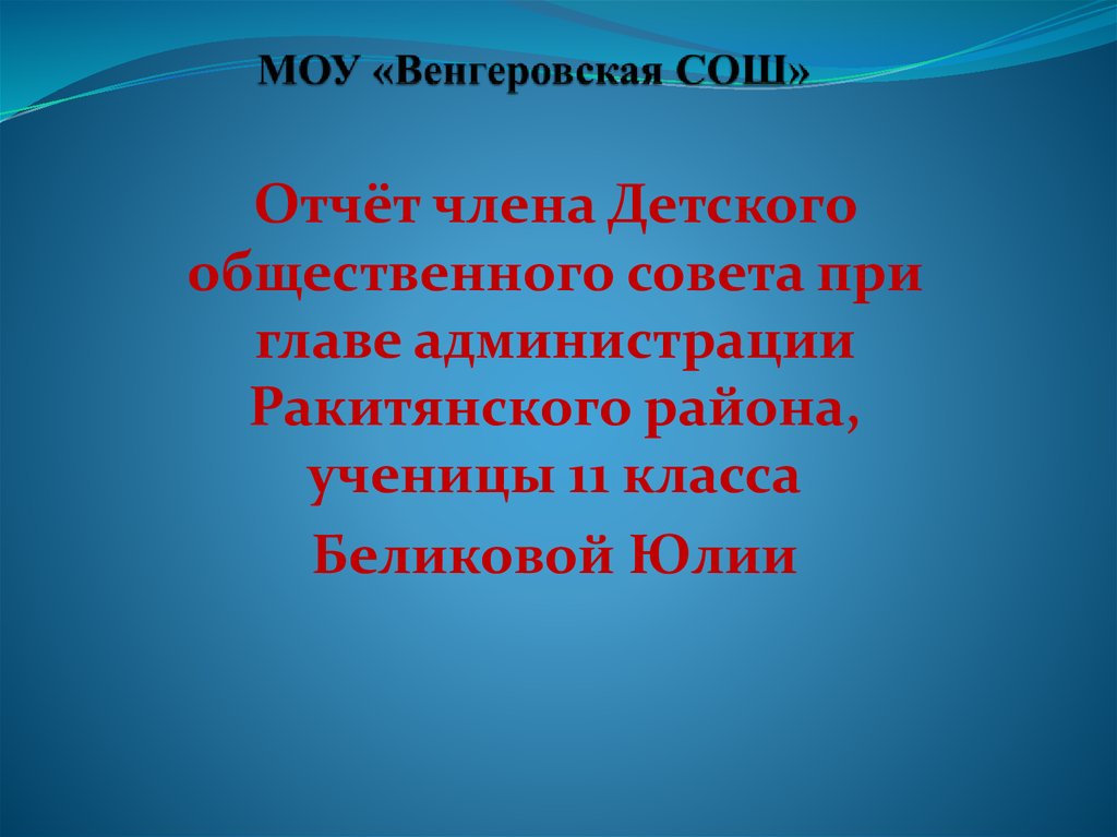 Отчёт члена Детского общественного совета при главе администрации Ракитянского района