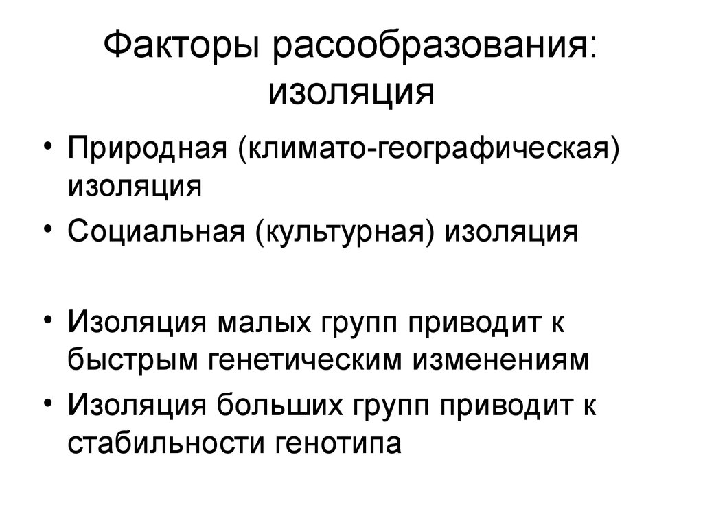 Факторы расообразования• Изоляция