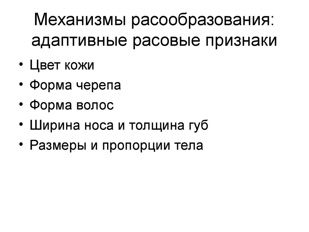 Механизмы расообразования:адаптивные расовые признаки