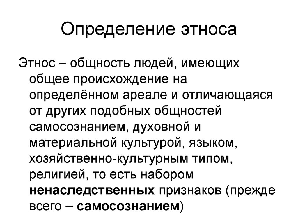 Определение этносаЭтнос – общность людей, имеющих
