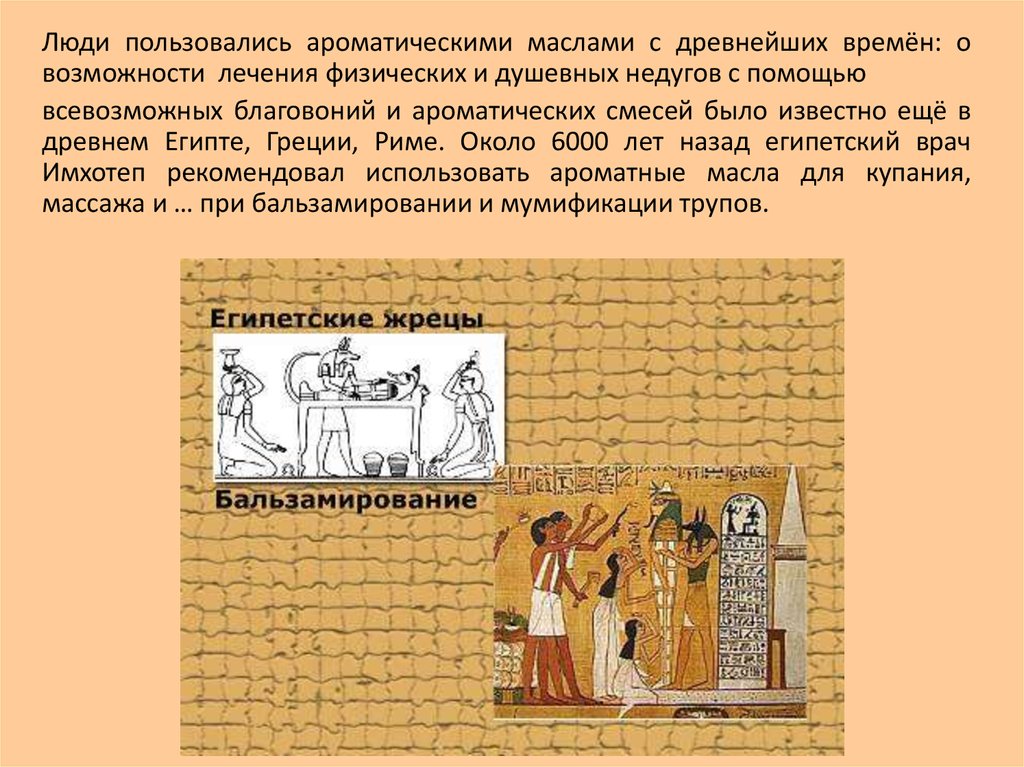 Имхотеп рекомендовал использовать ароматные масла для купания,