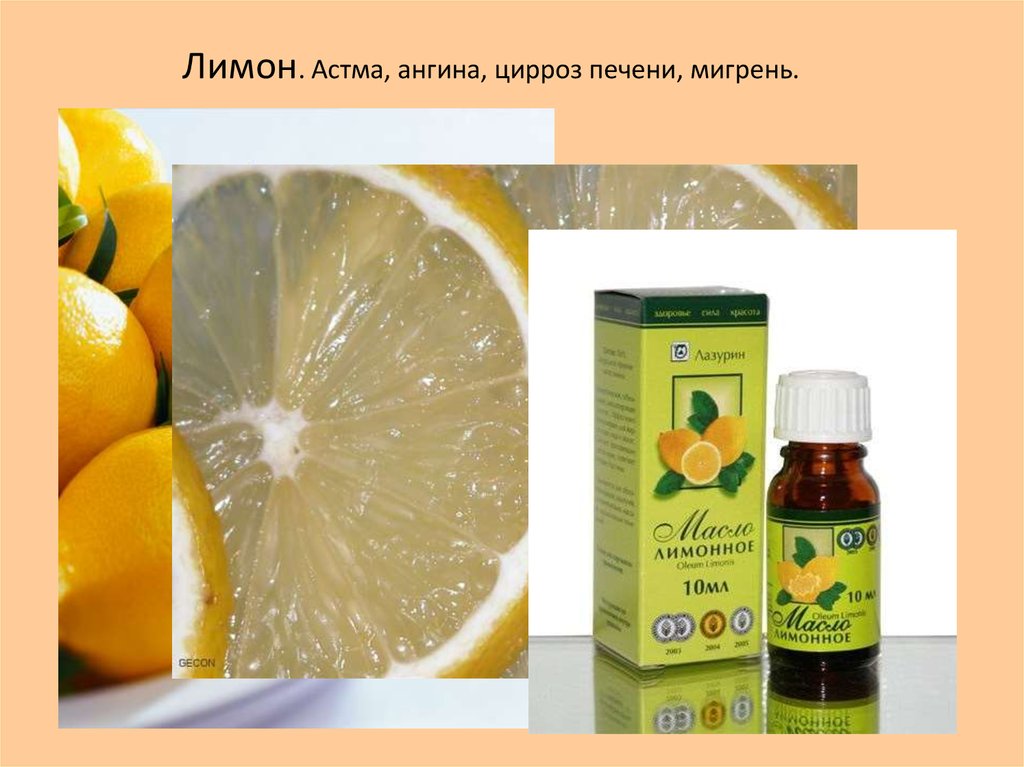 Лимон. Астма, ангина, цирроз печени, мигрень.17.