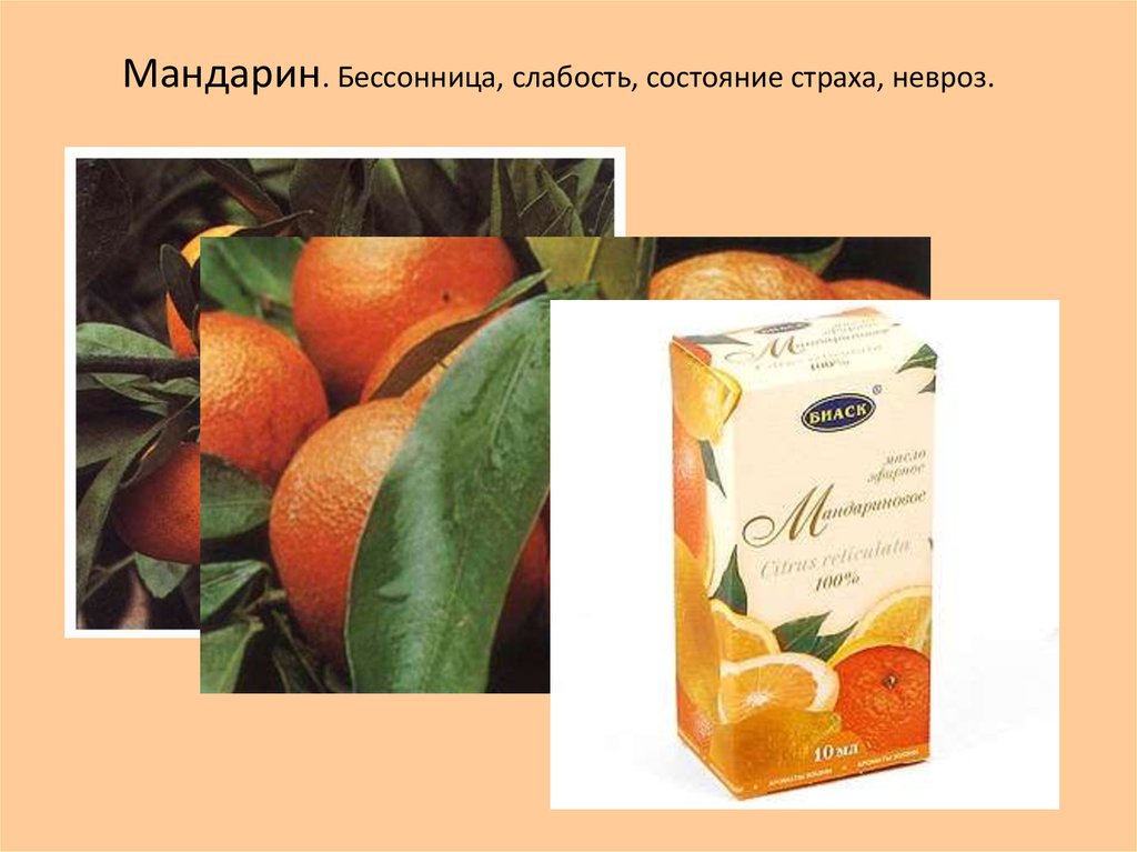 Мандарин. Бессонница, слабость, состояние страха, невроз.18.