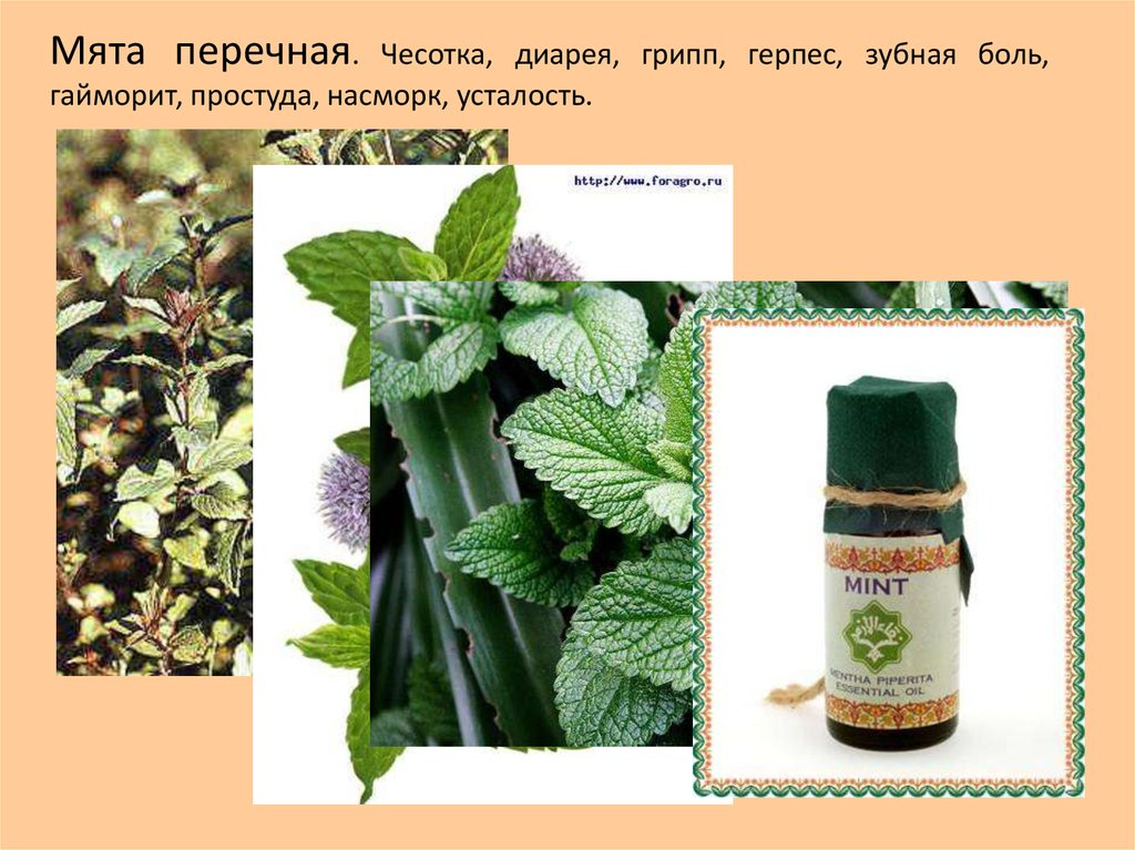 Мята перечная.Чесотка, диарея, грипп, герпес, зубная боль,