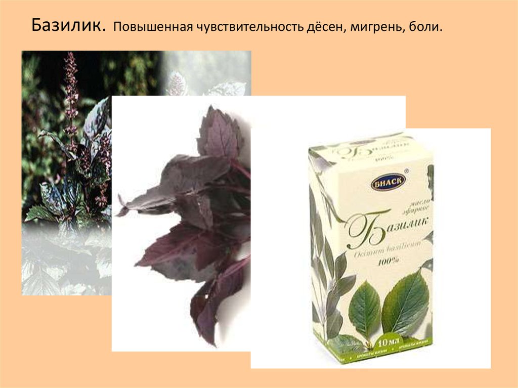 Базилик.Повышенная чувствительность дёсен, мигрень, боли.