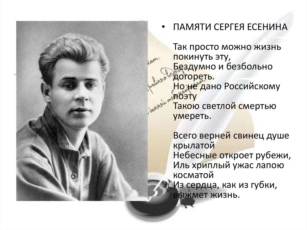 • ПАМЯТИ СЕРГЕЯ ЕСЕНИНАТак просто можно жизнь
