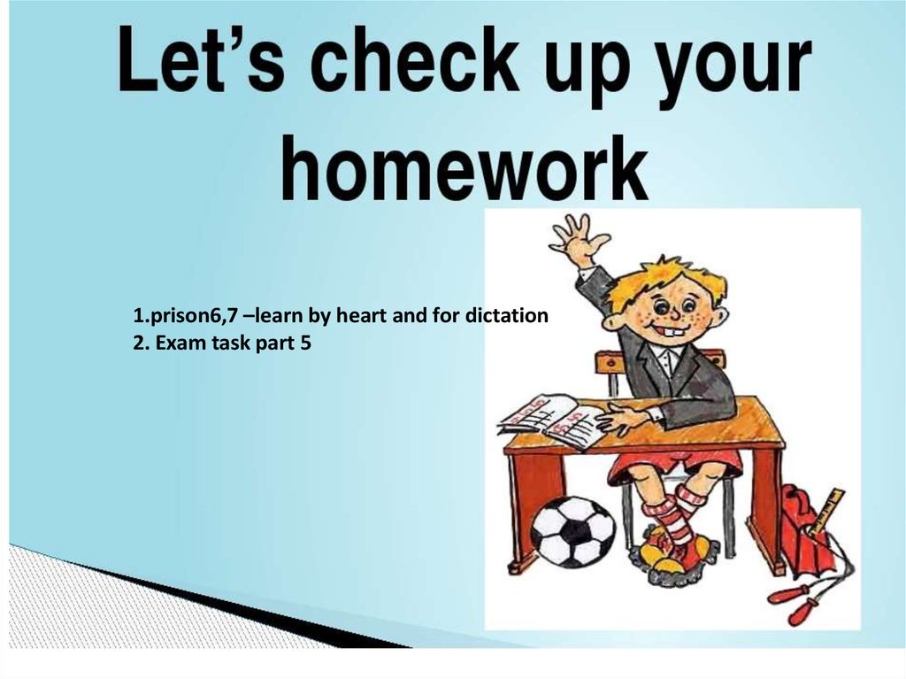 1.prison6,7 –learn by heart and for dictation2. Exam task part 5