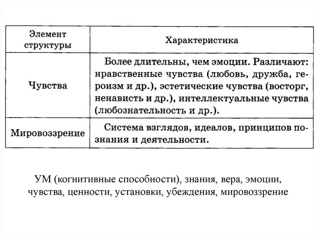 УМ (когнитивные способности), знания, вера, эмоции,