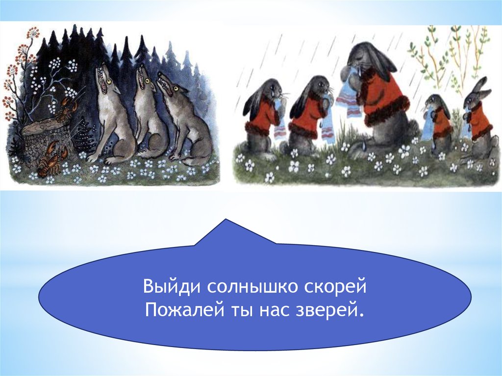 Выйди солнышко скорейПожалей ты нас зверей.