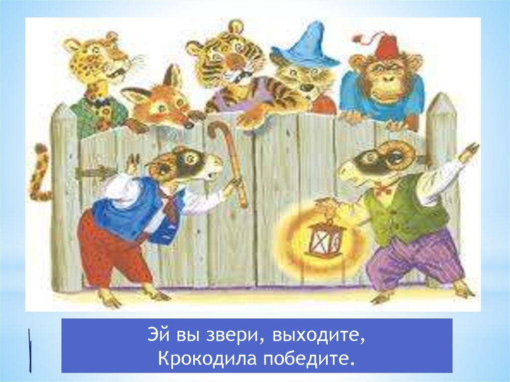 Эй вы звери, выходите,Крокодила победите.