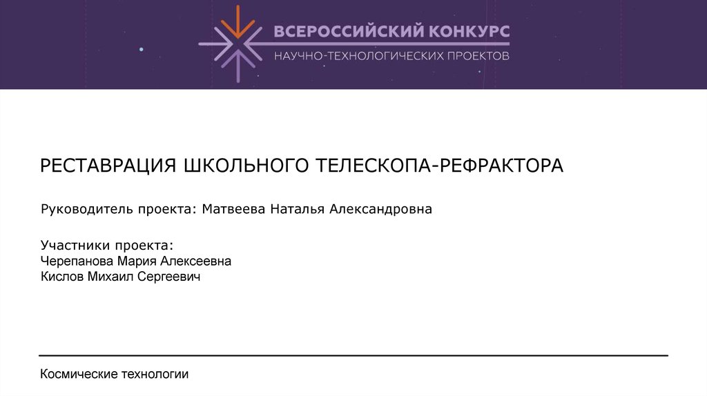 РЕСТАВРАЦИЯ ШКОЛЬНОГО ТЕЛЕСКОПА-РЕФРАКТОРАРуководитель проекта: Матвеева Наталья Александровна