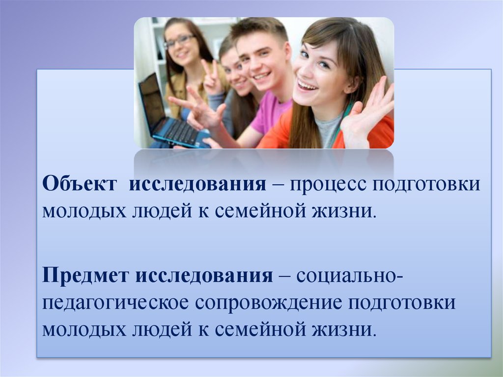 Объект исследования – процесс подготовкимолодых людей к семейной жизни.