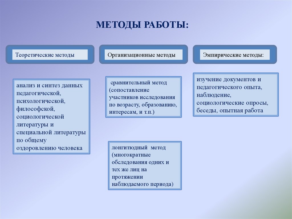 МЕТОДЫ РАБОТЫ:Теоретические методы