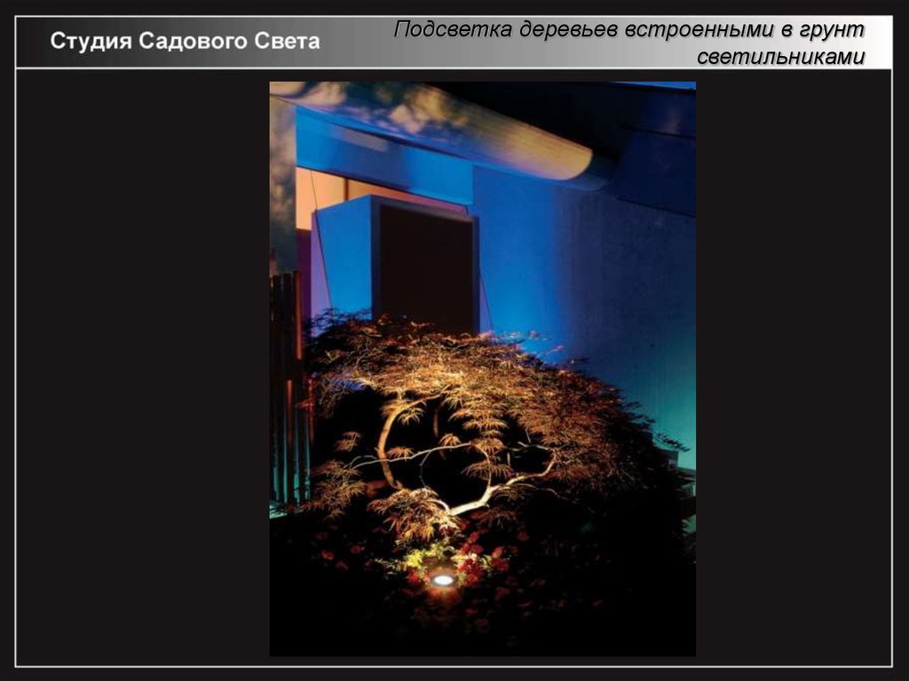 Подсветка деревьев встроенными в грунтсветильниками