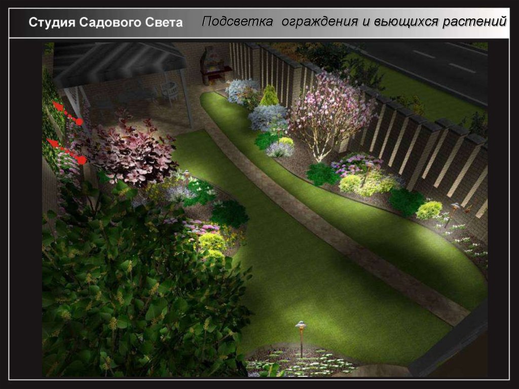 Подсветка ограждения и вьющихся растений25.