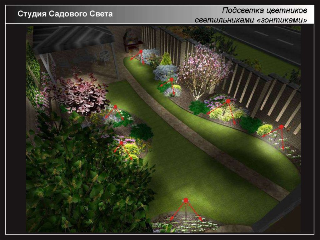 Подсветка цветниковсветильниками «зонтиками»