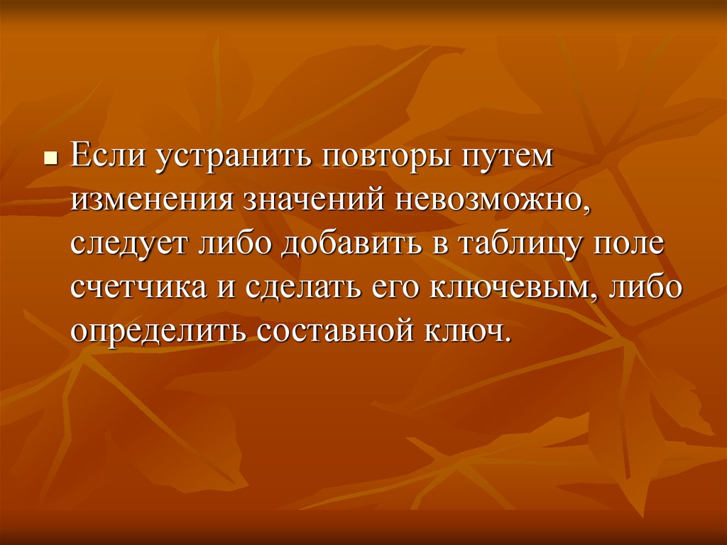 Если для таблицы определеныключевые поля, то Microsoft Access