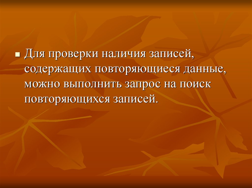 Для проверки наличия записей,содержащих повторяющиеся данные,