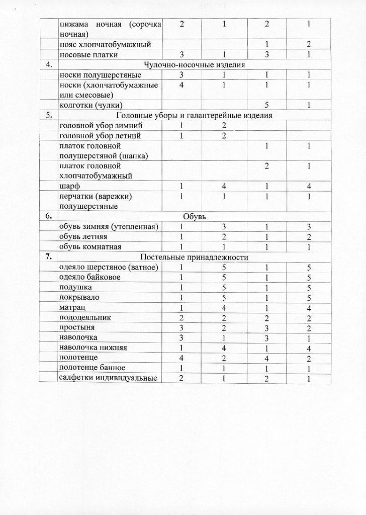 Нормативы обеспечения мягким инвентарем в организациях социального