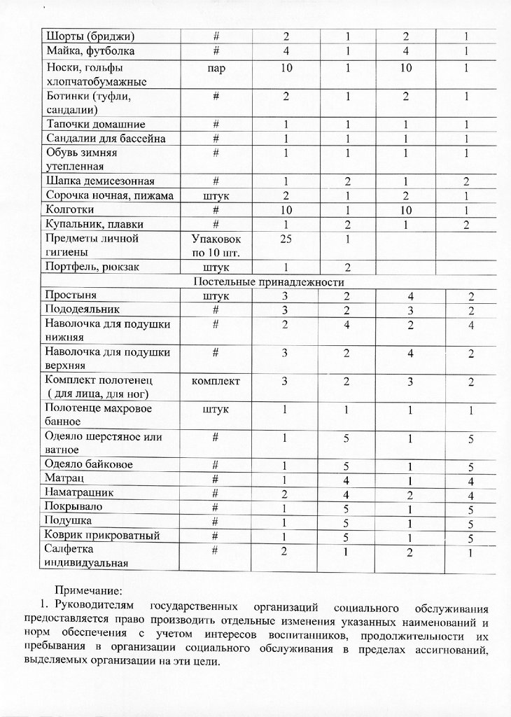 нормативы обеспечения мягким инвентарем в организациях СОциалЬного