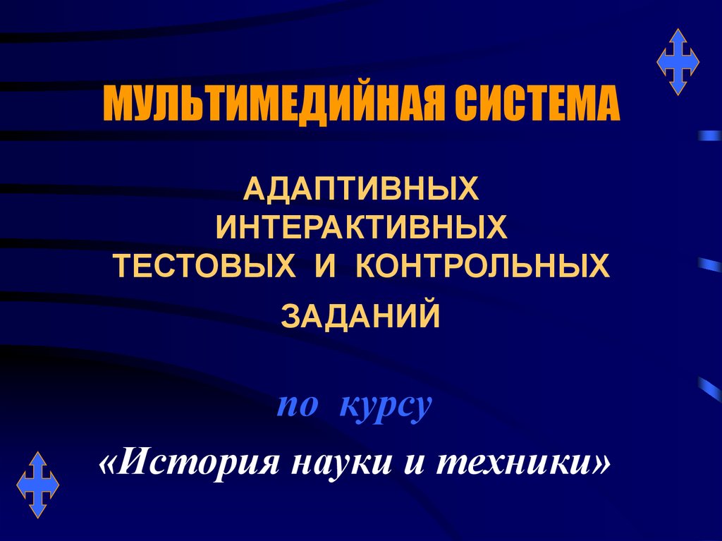 Мультимедийная система адаптивных интерактивных тестовых и контрольных заданий по курсу «История науки и техники»