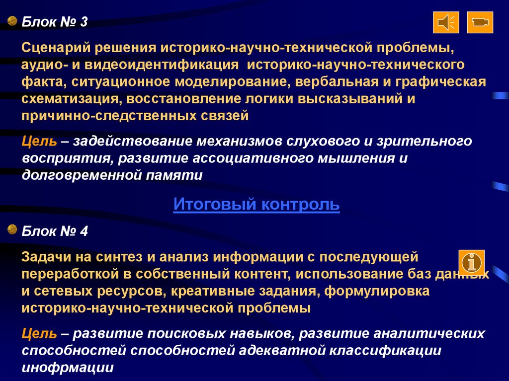 Блок № 3Сценарий решения историко-научно-технической проблемы,