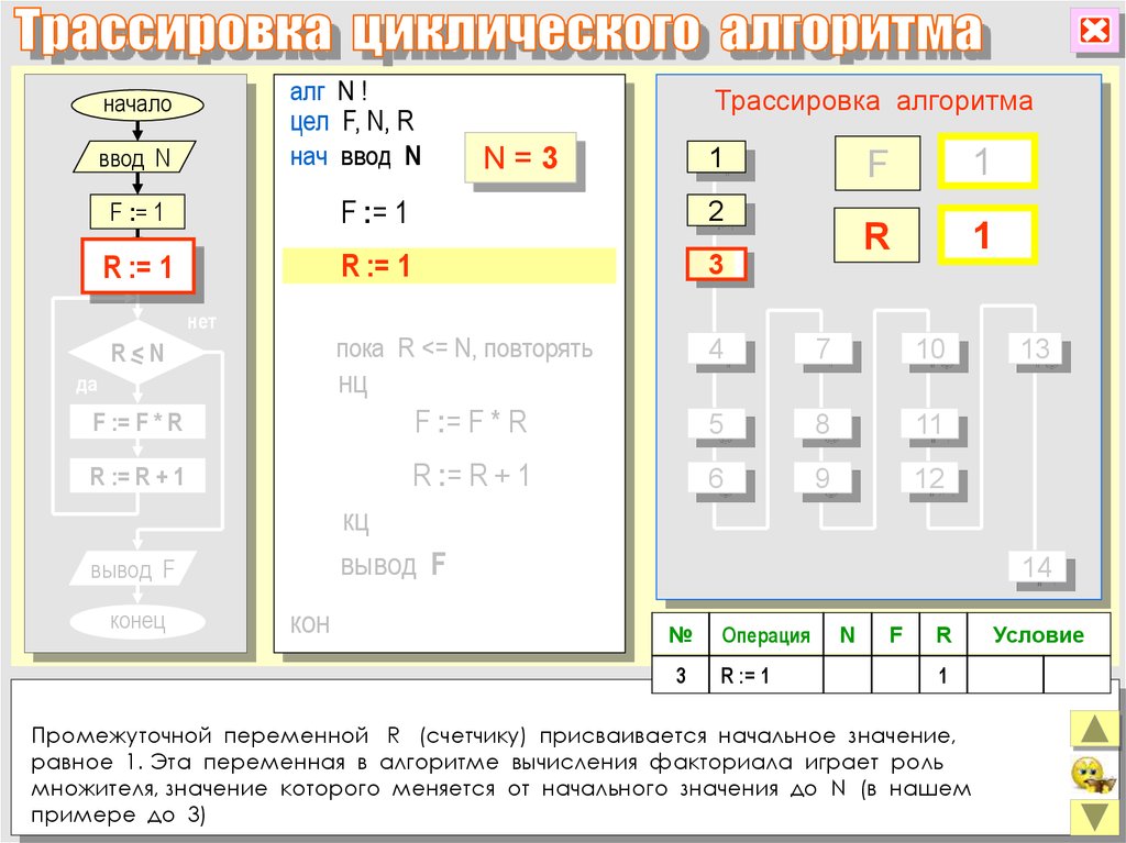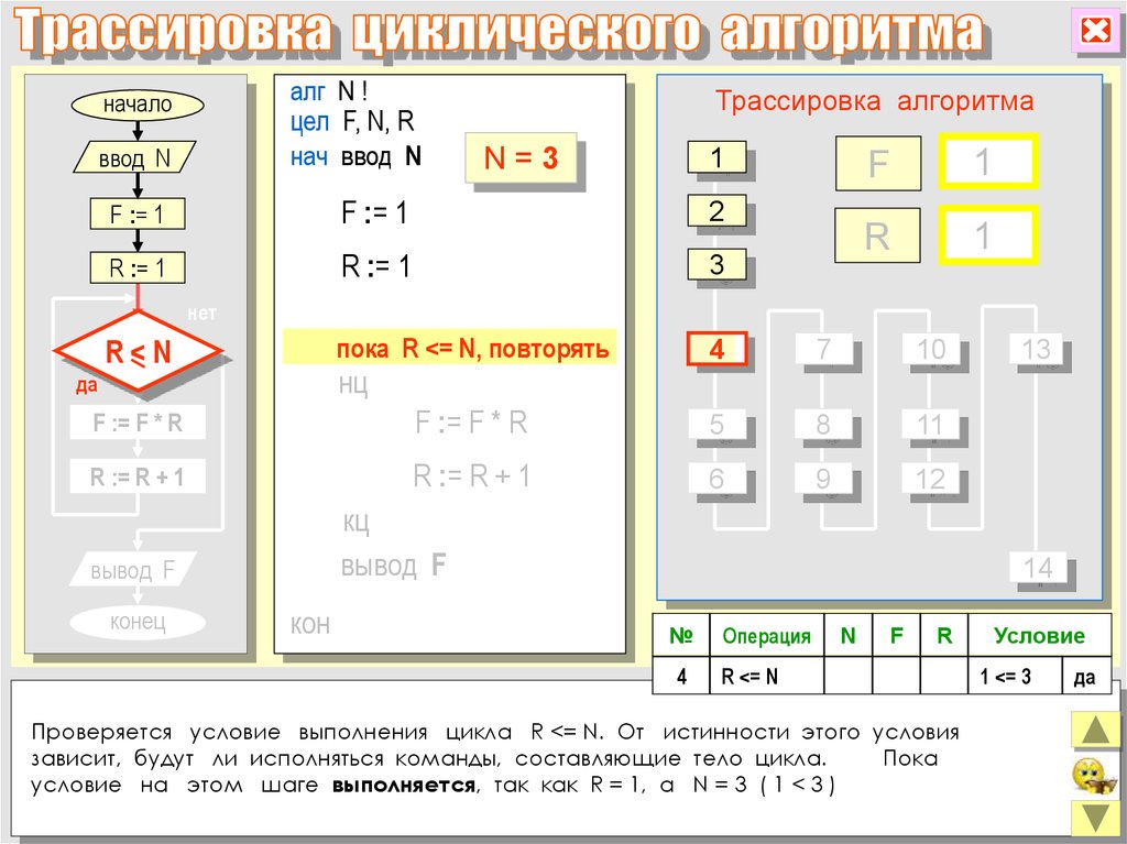 значении R. Условие на этом шаге не выполняется, так как R = 4, а N = 3 ( 4 > 3 ).
