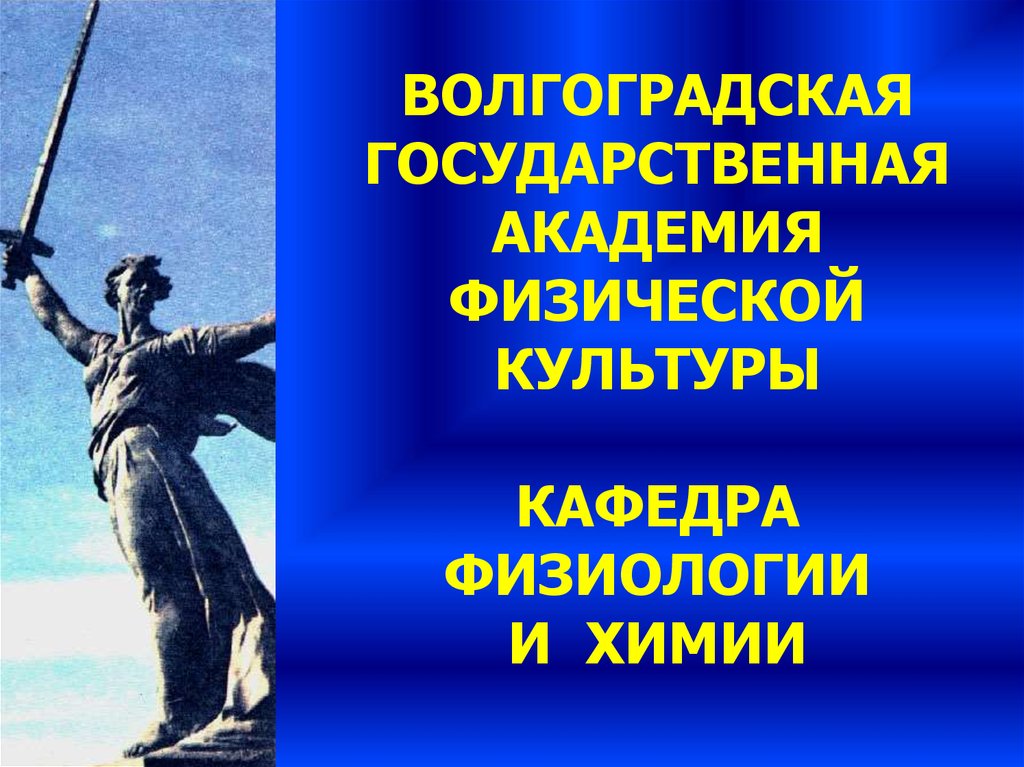 2. ВОЛГОГРАДСКАЯ ГОСУДАРСТВЕННАЯ АКАДЕМИЯ ФИЗИЧЕСКОЙ КУЛЬТУРЫ КАФЕДРА ФИЗИОЛОГИИ И ХИМИИ