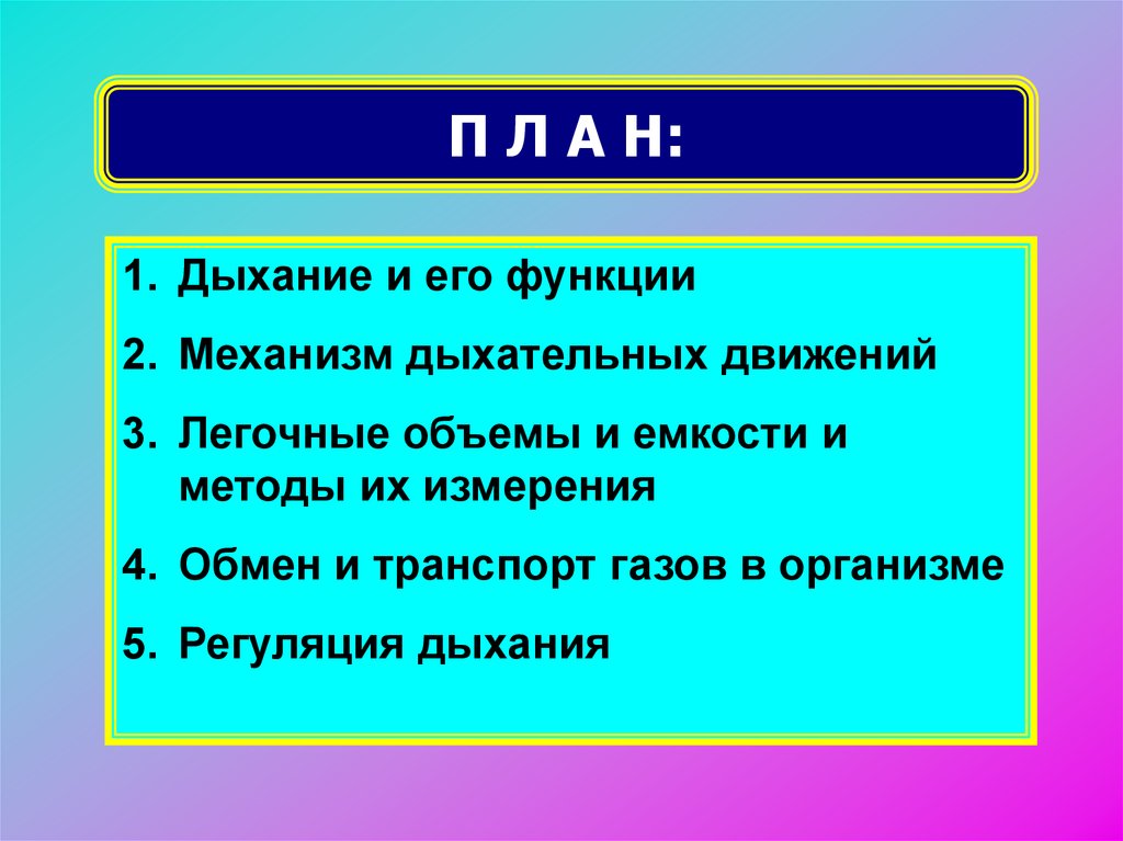 П Л А Н:1. Дыхание и его функции