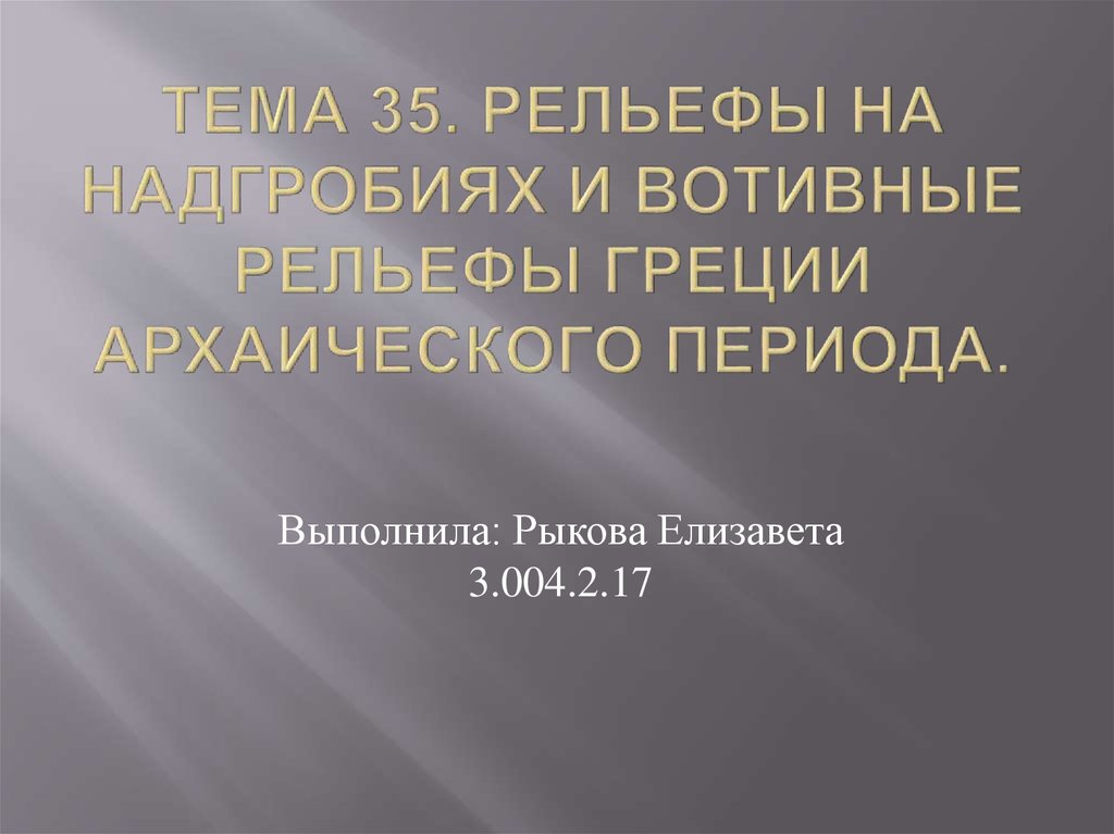Тема 35. Рельефы на надгробиях и вотивные рельефы Греции архаического периода.