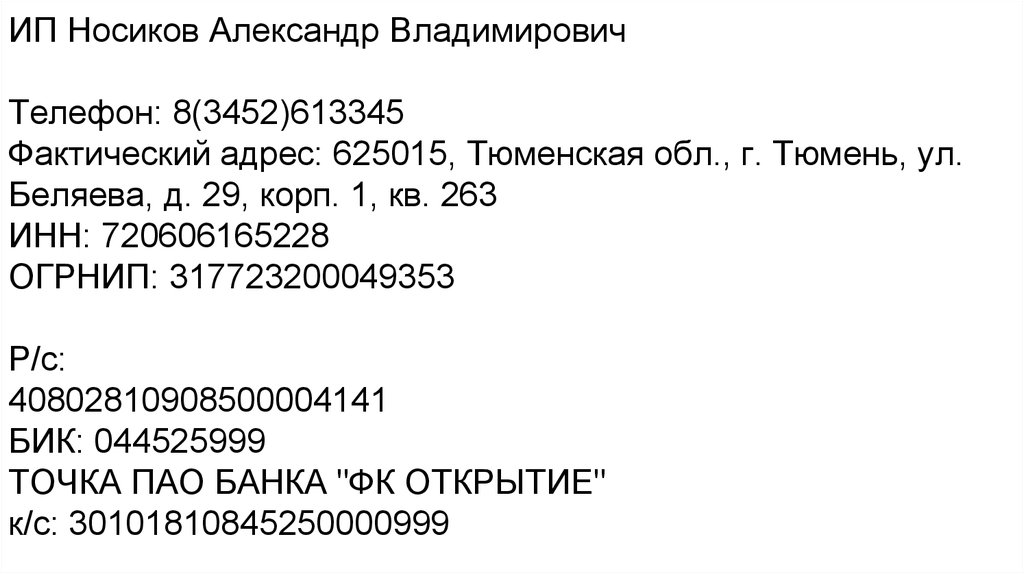 ИП Носиков Александр ВладимировичТелефон: 8(3452)613345