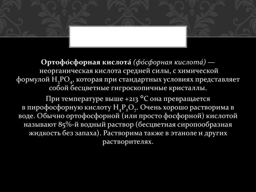 ОРТОФОСФОРНАЯ КИСЛОТАПрезентацию подготовил