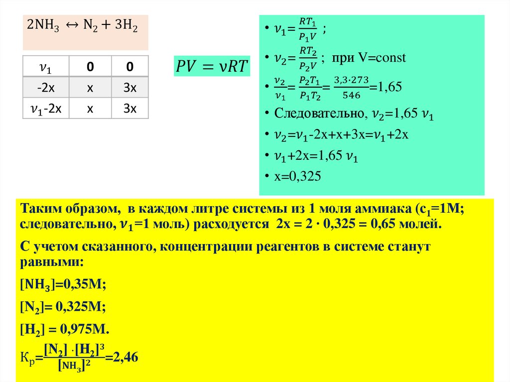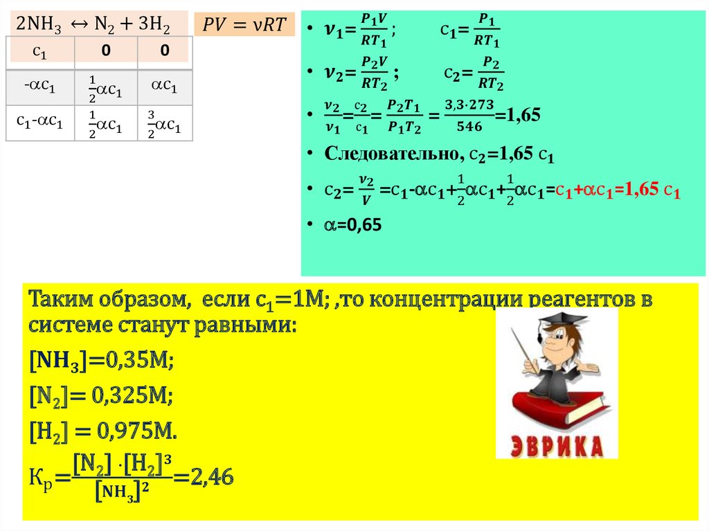 • Концентрация аммиака в замкнутом сосуде при 00С